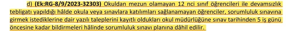 Formu doldurmayan veya dilekçe vermeyen beklemeli durumdaki öğrencilerimizin ve Mesem programındaki öğrencilerimizin Eylül dönemindeki sınavlara girmeleri mümkün değildir.
