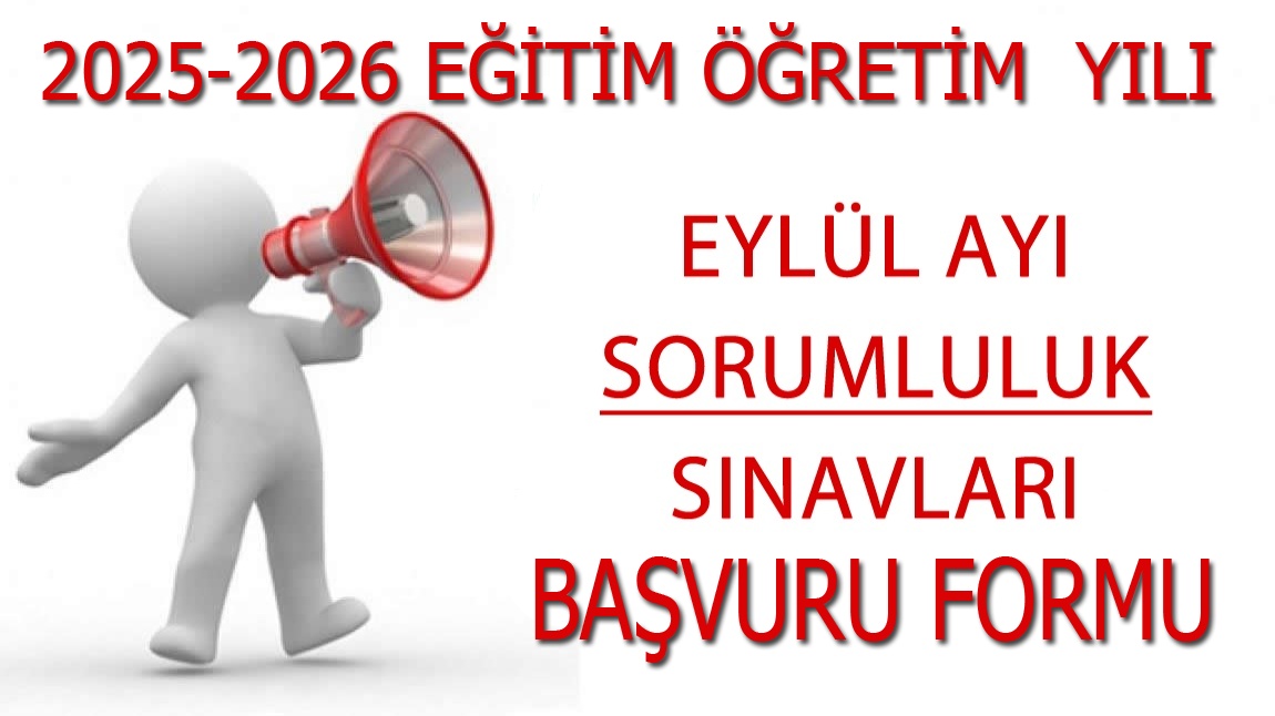 Beklemeli durumda olan 12.sınıf öğrencileri ve MESEM Programı Öğrencilerinin 08-19 Eylül 2025 tarihleri arasında yapılacak sorumluluk sınavlarına girebilmeleri için yönetmelik gereği aşağıdaki formu doldurmaları veya okulumuza sınavlar başlamadan 5 iş günü öncesine kadar (01 Eylül 2025 Pazartesi) dilekçe vermeleri gerekmektedir.