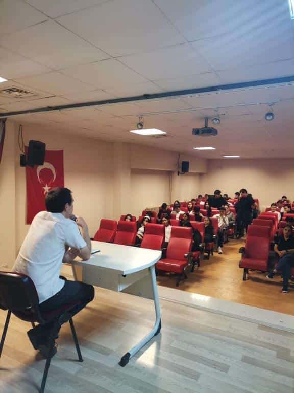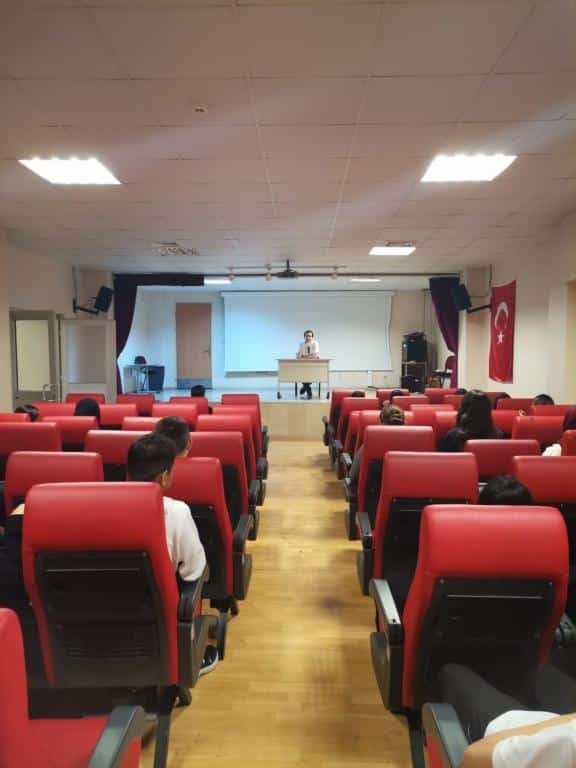 Okulumuzun konferans salonunda gerçekleşen seminerde, Tuzla Müftülüğünde görevli Vaiz Mehmet Akif DOĞAN, öğrencilerimize Ahilik geleneğinin önemi ve değerleri hakkında bilgilendirici bir konuşma yaptı.